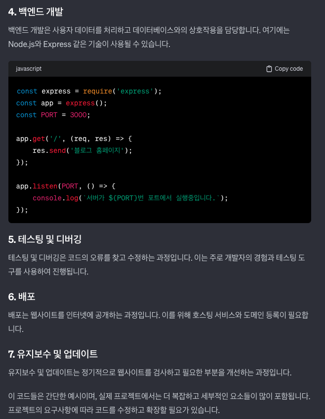 예시: 기본적인 블로그 웹사이트를 만들고 싶습니다. 사용자가 게시물을 작성하고, 읽고, 댓글을 달 수 있어야 합니다. HTML과 CSS, JavaScript를 사용할 계획입니다. 이를 위해 필요한 단계들과 각 단계에서 고려해야 할 사항들을 알려주세요. 또한, 제가 놓친 중요한 단계나 필요하지 않은 단계가 있는지도 확인해 주세요.