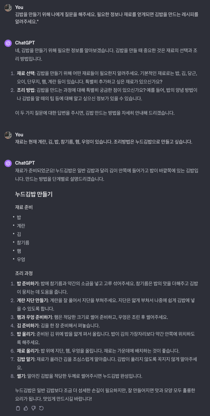 말 그대로 대화의 주제를 ChatGPT에게 주는것 입니다. GPT가 사람에게 질문을 하듯이 프롬프트를 유도하는 것입니다.
