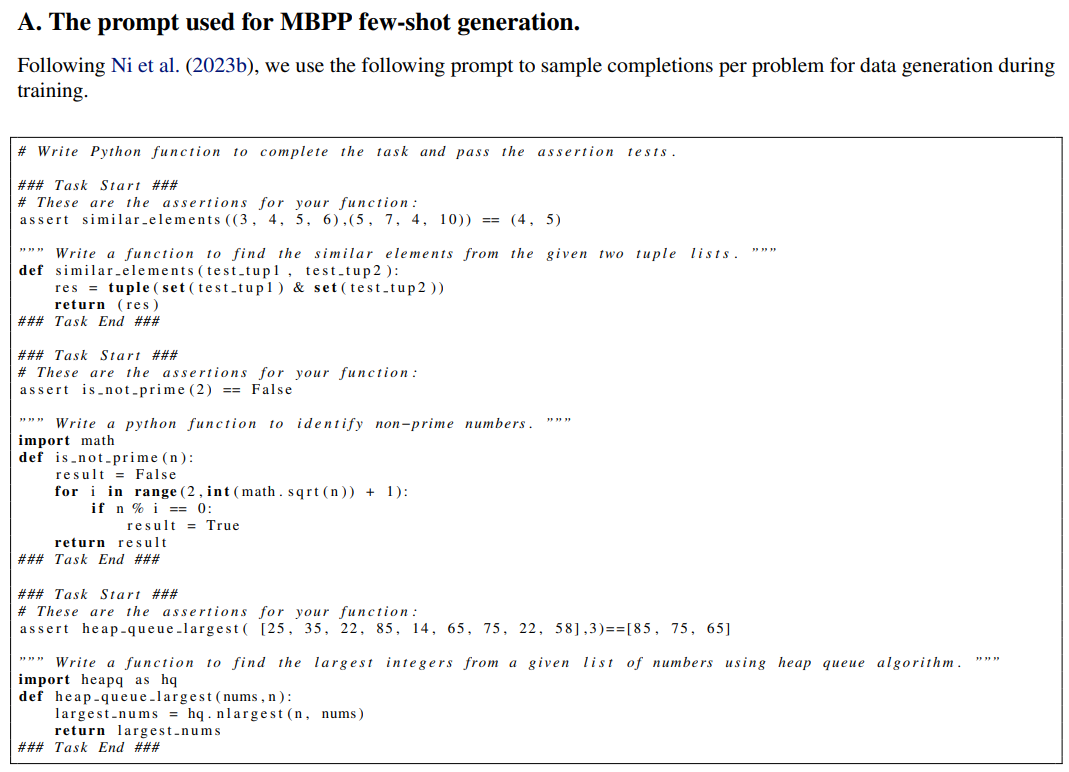 2. Data generation : 각 반복에서는 이전 생성기에서 쿼리당 16개의 완성을 샘플링했습니다. GSM8K의 경우, 첫 번째 반복 샘플은 오리지널 GSM8K 훈련 데이터에서 가져온 것이고, MBPP의 경우에는 사전 훈련된 CodeLLaMA 모델에서 가져온 것입니다. 완성된 작업은 정확성에 따라 레이블링되었습니다.